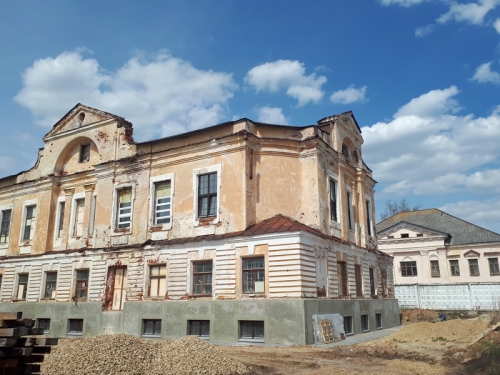 Тёплое каменное здание было построено в 1753 г., в котором церковь занимала второй этаж, в первом помещались трапезная и келарня, а в подвальном - хлебопекарня, квасоварня и несколько келий для трудившиеся здесь сестёр. Чердак использовался для хранения разного зернового хлеба. Здесь же в особом отделении помещалась библиотека общины.