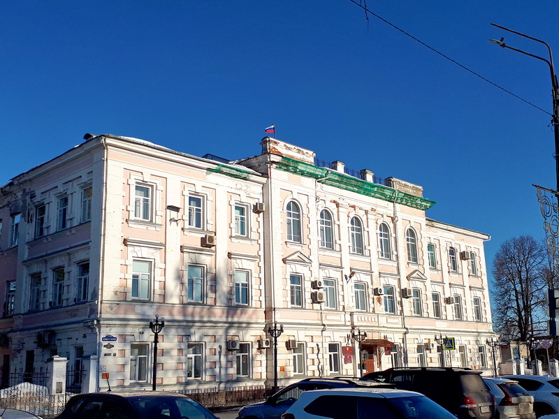 Здание, имеющее в плане П-образную форму, представляет собой интересный образец крупной общественной постройки периода эклектики.
